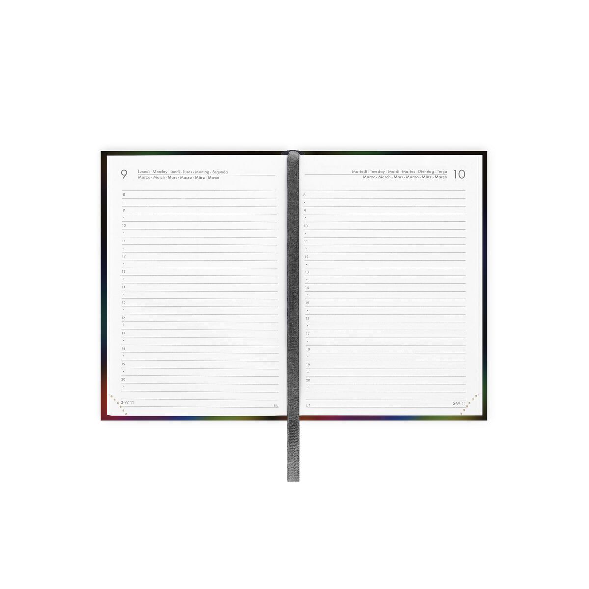 24 páginas de agenda mensal, 2 para cada mês.