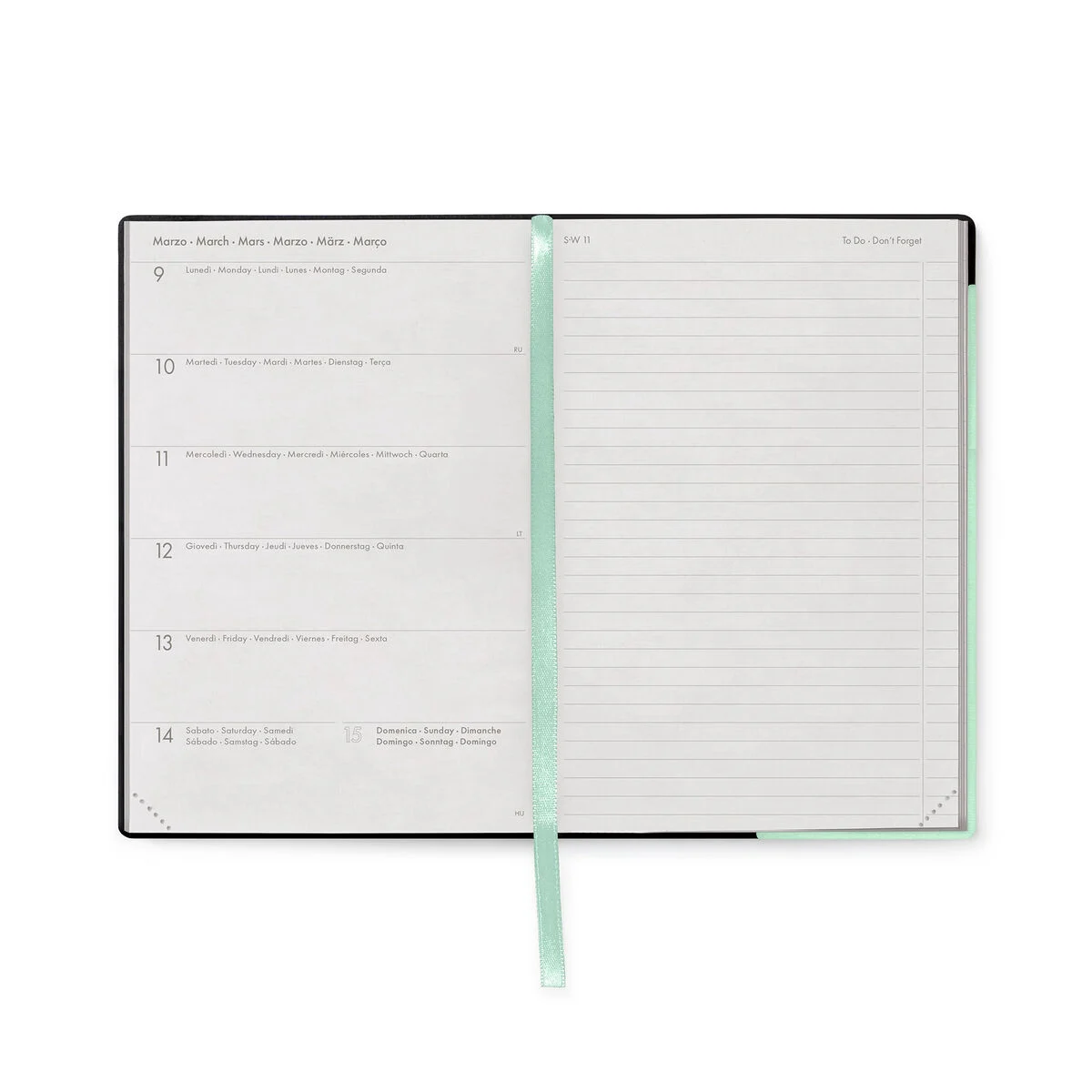 160 páginas, cantos perfurados 6 idiomas (IT, EN, FR, ES, DE, PT) Dias à esquerda, página pautada à direita Planejador de férias e feriados internacionais 24 páginas de planejador mensal, 2 para cada mês Planejador mensal de janeiro de 2027 Tamanho: 12 x 18 cm O papel é certificado FSC® (FSC-C154586), proveniente de florestas bem geridas, florestas certificadas FSC® e outras fontes controladas