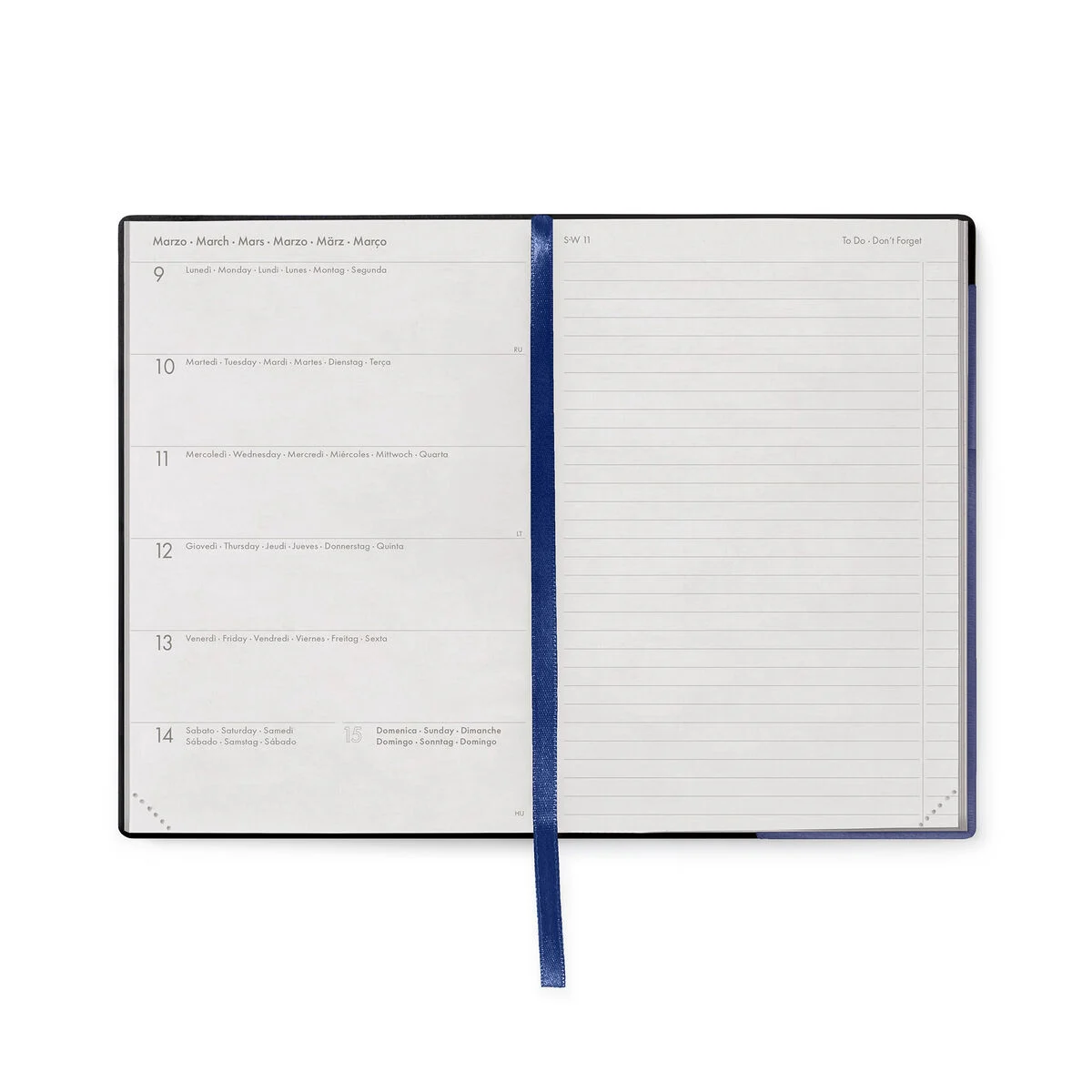 160 páginas, cantos perfurados 6 idiomas (IT, EN, FR, ES, DE, PT) Dias à esquerda, página pautada à direita Planejador de férias e feriados internacionais 24 páginas de planejador mensal, 2 para cada mês Planejador mensal de janeiro de 2027 Tamanho: 12 x 18 cm O papel é certificado FSC® (FSC-C154586), proveniente de florestas bem geridas, florestas certificadas FSC® e outras fontes controladas