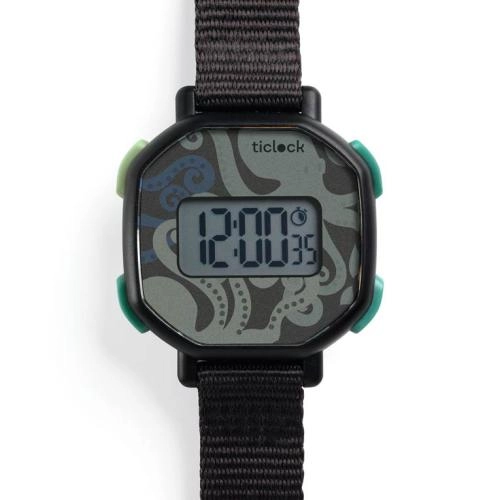 Um elegante relógio digital. O seu mostrador preto exibe as horas, minutos e segundos. Relógio com cronómetro, com caixa à prova de choque e à prova de água até 5 bar. Funciona com 1 pilha SR626SW, incluída.