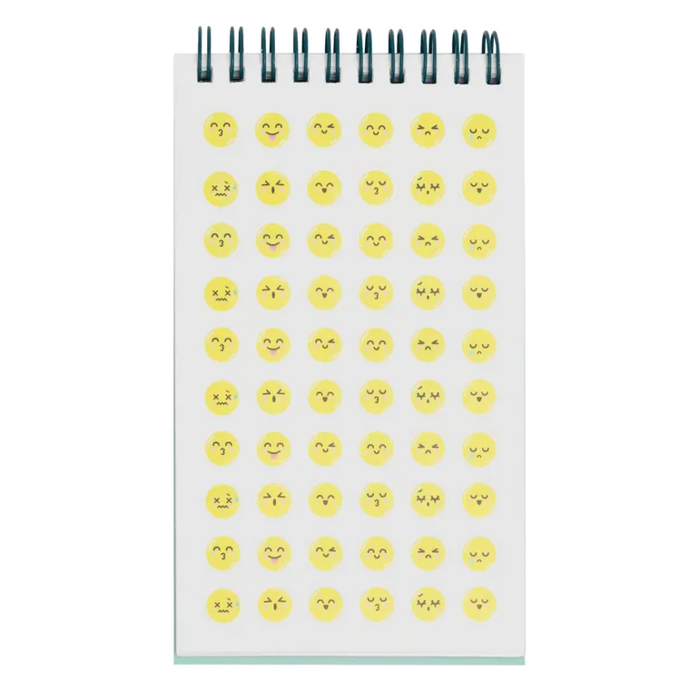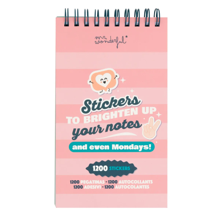 Bloco com encadernação espiral e nada menos que 1000 autocolantes no interior. No total, 36 folhas de autocolantes de diferentes tipos: