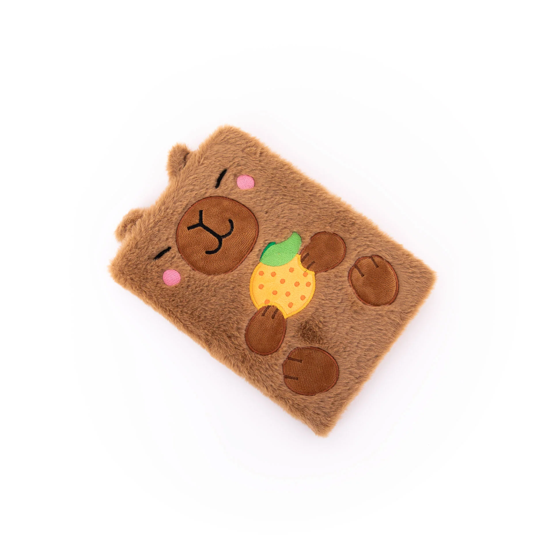 É totalmente forrado em poliéster, parecendo um bonito e suave capivara de peluche.