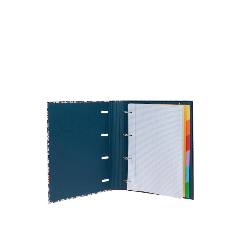 Contém seis separadores para organizar as diferentes disciplinas ou notas.