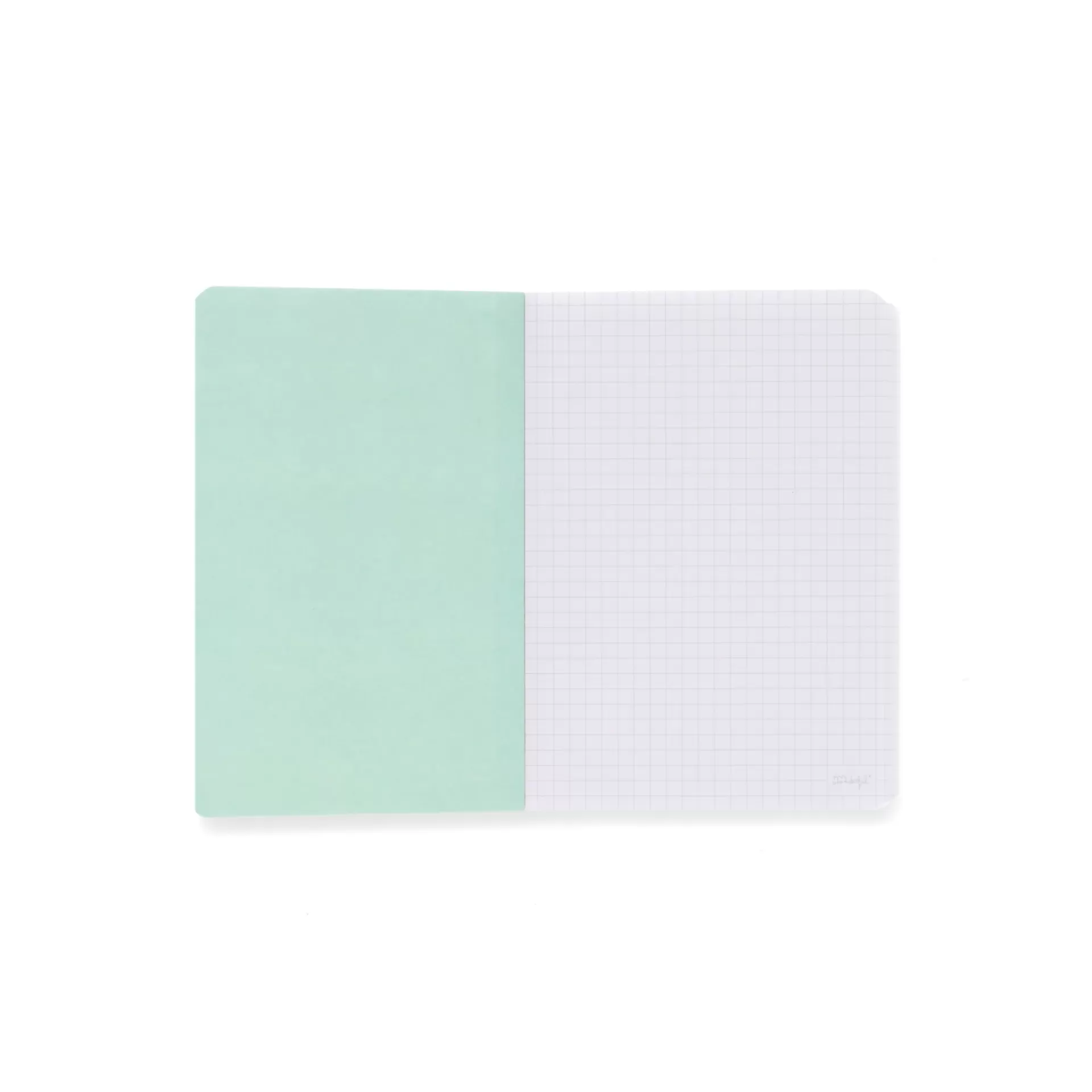 Caderno de tamanho A6 com encadernação cosida que abre 180°. Capa com acabamento suave ao toque.