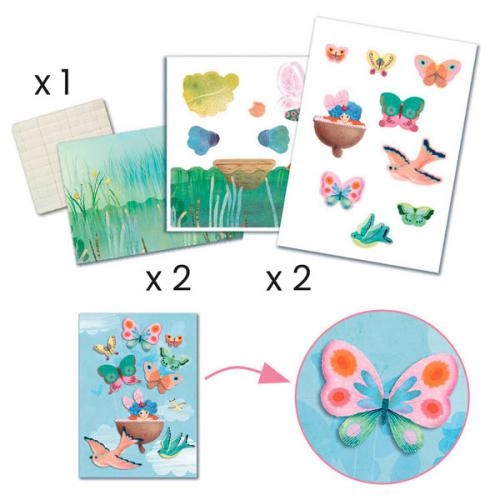 Conjunto muito completo que oferece 6 atividades criativas e muitos projetos sobre o tema das fadas: pintura, desenho, colagem, maquetes, cartões para raspar, mesas 3D. Todo o material está incluído.
