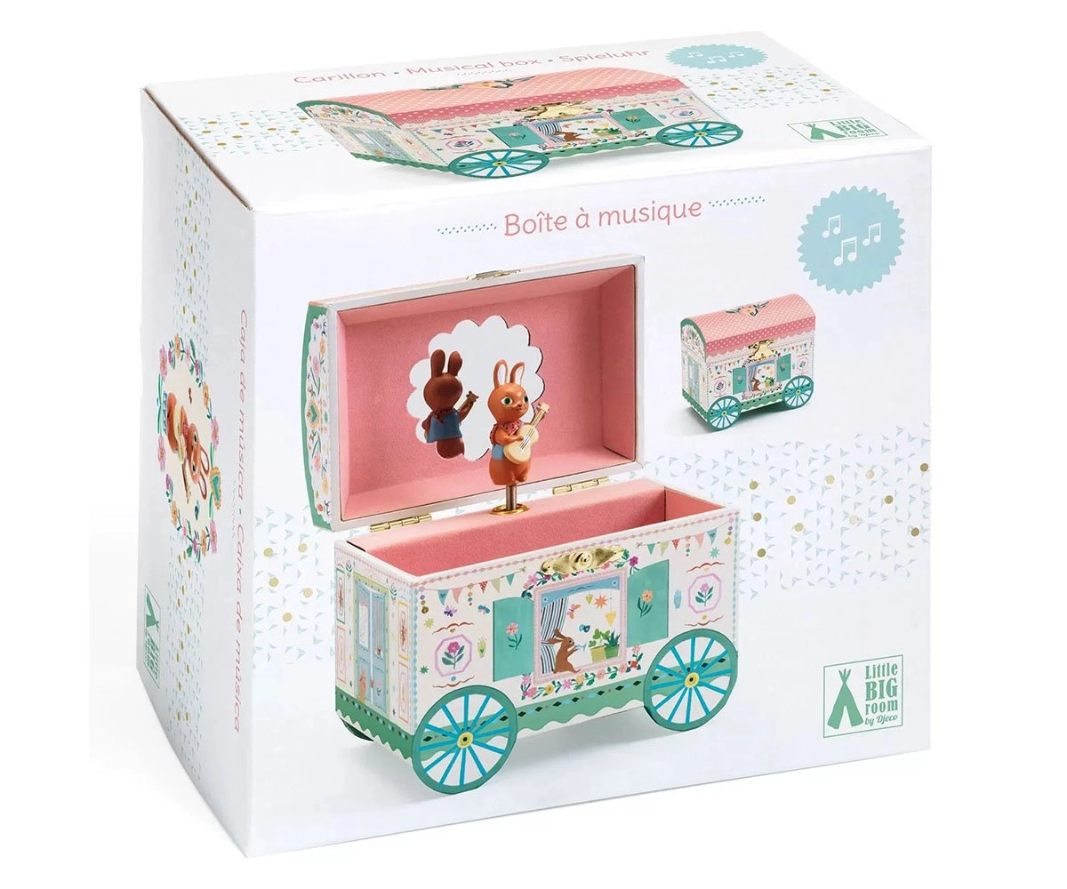 A Caravana é uma caixa de música em forma de coração para guardar jóias e itens secretos. Rode a alça e abra a caixa para ter uma surpresa! Uma bailarina delicadamente esculpida irá rodar, refletida num espelho em formato de coração, ao som de 'Le temps des cerises' de Antoine Ronzon..