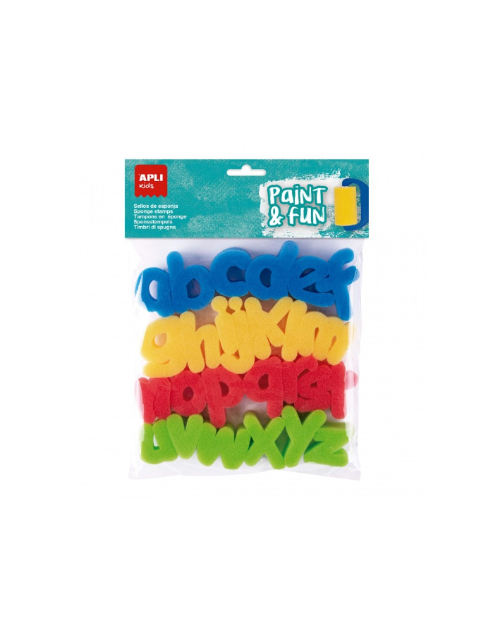 Bolsa com carimbos de esponja modelo ABC.