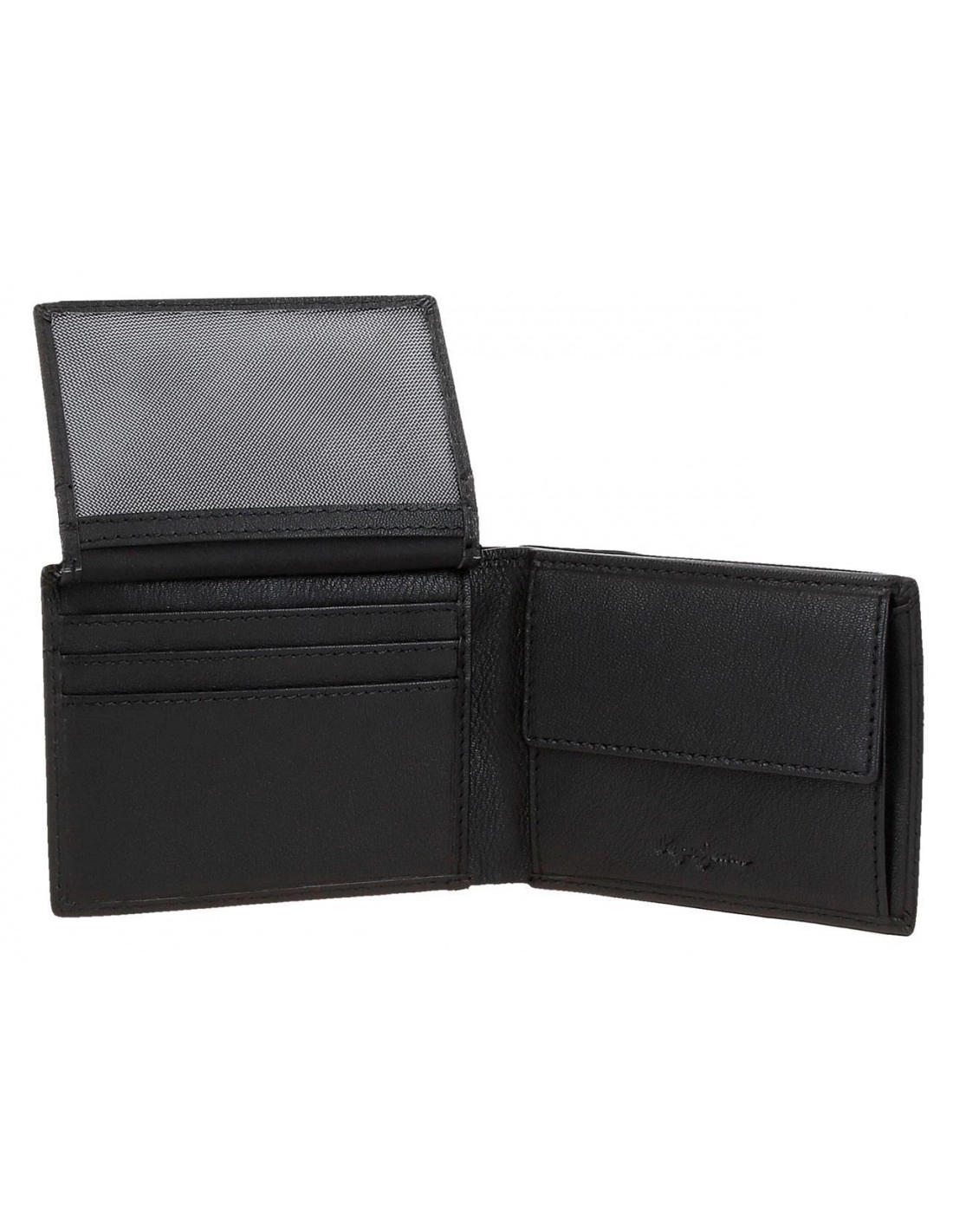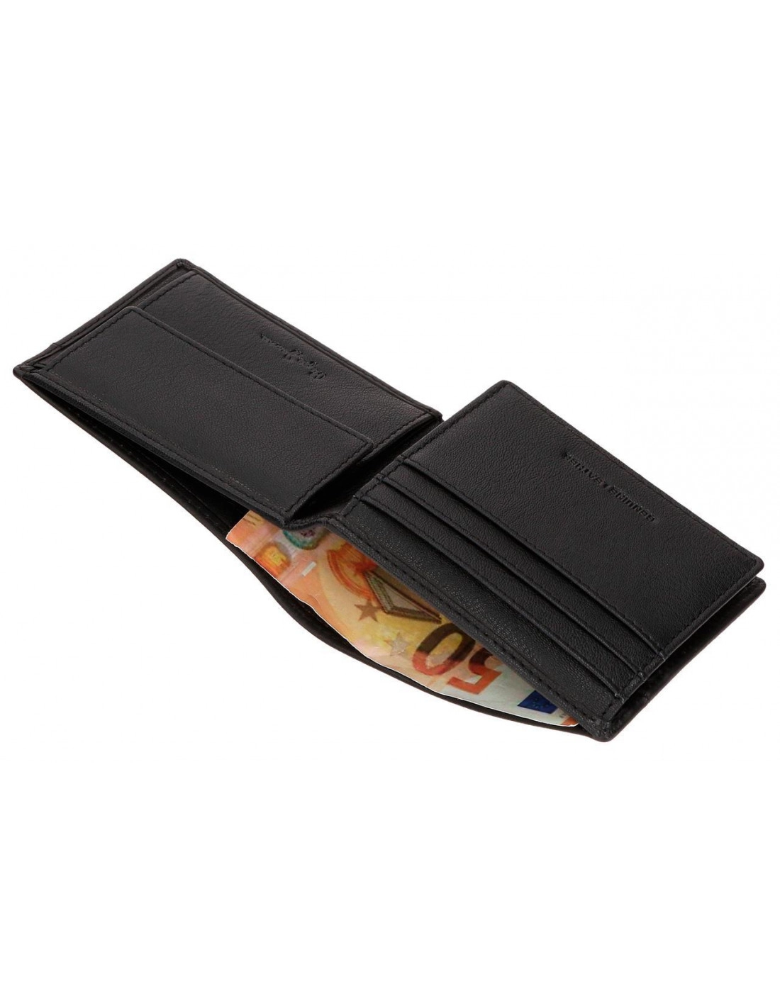 Possui seis compartimentos para guardar cartões, um compartimento para identificação e um espaço independente para notas. Inclui uma bolsa com fecho de clique. Sistema especial de proteção para cartões RFID que bloqueia sinais de dispositivos de varredura de radiofrequência não autorizados.