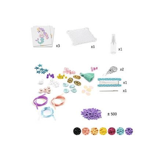 Fazer atividades criativas com os mais pequenos é divertido para todos! Pontos positivos: as contas colam umas nas outras quando ativadas com água; a placa mantém as contas no lugar enquanto trabalhas no design; muitos acessórios para personalizar.