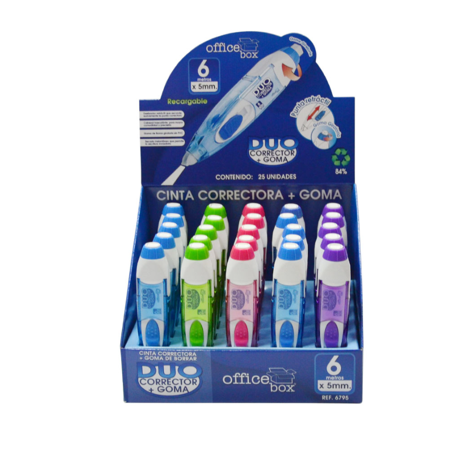 Home Borrachas Duo Corretor + Borracha Office Box Duo Corretor + Borracha Office Box SKU: 1023 4,30 € Desconto de %. IVA incluído. Comprar Contactar Adicionar à wishlist Tinta de grande qualidade e secagem rápida. Retrátil e Recarregável. Formato Ergonómico. Inclui borracha que não deixa residuos. Fita corretora com 0,5 cm de largura e 10 m de comprimento. Tamanho Ideal para guardar no estojo. Cores disponíveis: Azul, verde, rosa e roxo Cor da Embalagem: Sortido Partilhar