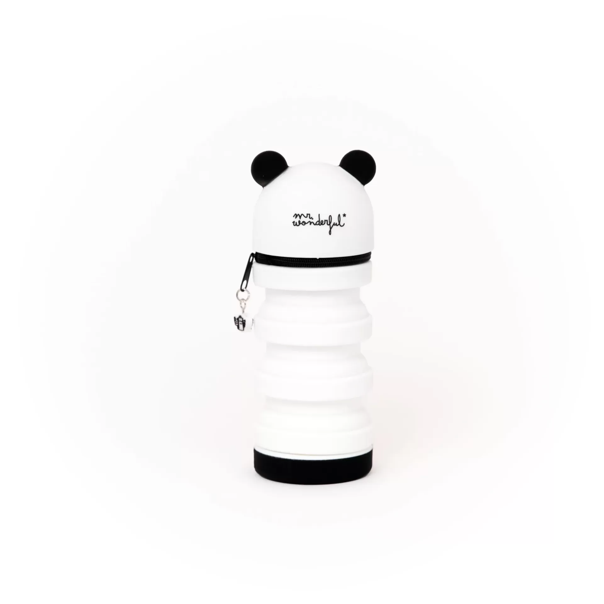 Estojos para lápis em silicone, extensíveis: quando estão vazios, comprimem-se; quando estão cheios, alongam-se; e quando se querem usar como porta-lápis, deixam-se na posição intermédia.