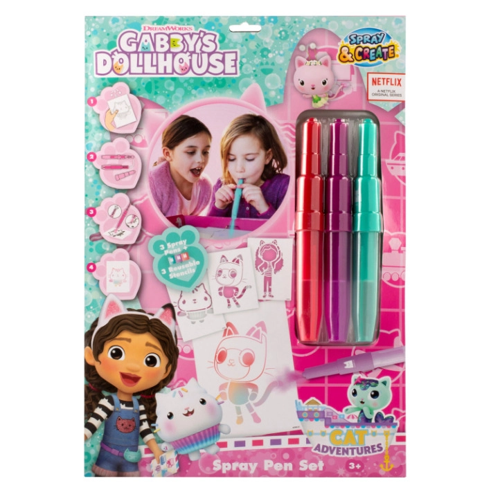 Entra no mundo mágico da Gabby's Dollhouse com estas encantadoras Canetas Spray.