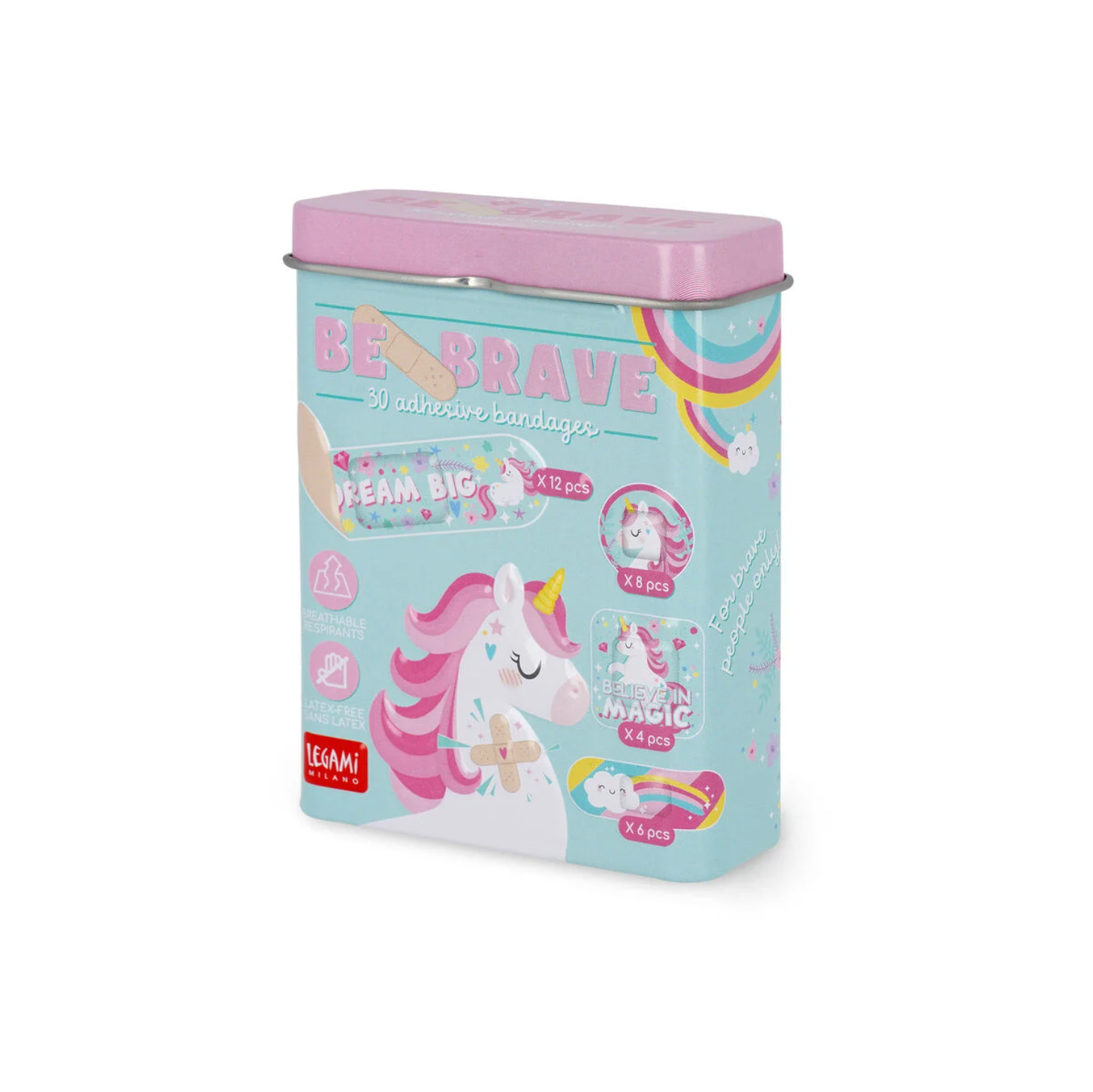 Cada ferida é uma chance de curar e crescer. Mais do que tudo, é uma chance de ficar super cool com os 30 pensos impressos Unicorn Be Brave da Legami! 4 tamanhos diferentes, uma formulação extremamente suave e detalhes coloridos os tornam ideais para crianças... e a inveja de todos os adultos.