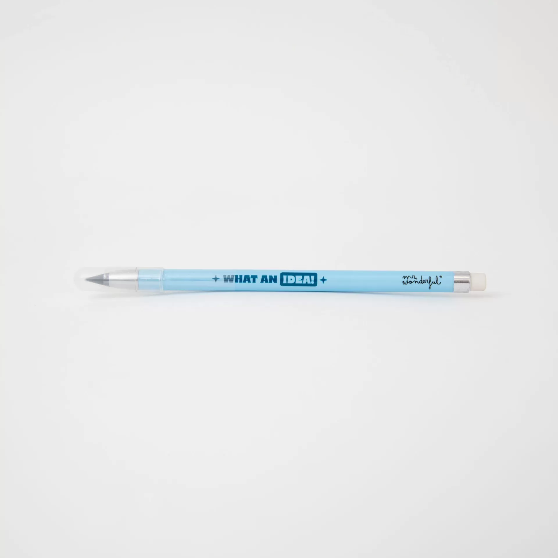 Lápis com mensagem em inglês impressa.A sua ponta não é feita de grafite, mas sim de uma liga de estanho e bismuto, o que significa que não precisa ser apontada, não borra, não borra ao escrever e ainda pode ser apagada normalmente.