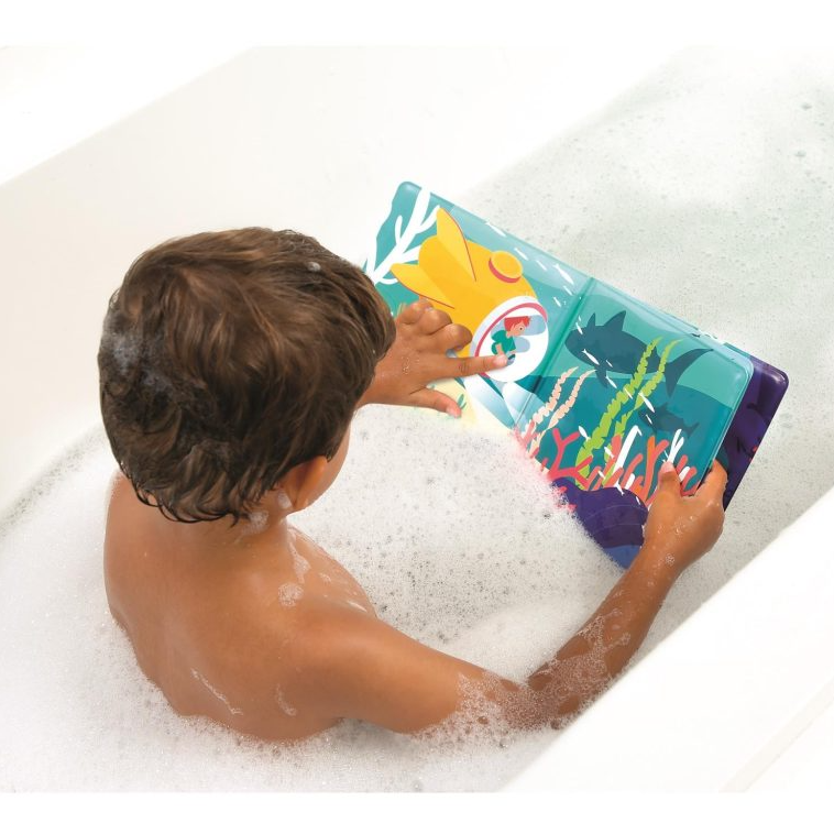 Indicado para crianças a partir dos 10 meses, este livro de banho mágico é o companheiro perfeito para manter o bebé ocupado na hora do banho. As ilustrações sobre o tema do mar ajudarão o bebé a descobrir o fundo do mar e a aprender o nome dos animais! 12 animais e corais brincam às escondidas: basta mergulhar o livro na água para os descobrir. O seu filho também pode fazê-los aparecer, aplicando água com os dedinhos, como se estivesse a colorir os animais. É um livro com o qual se pode brincar sem parar. Deixe-o secar e os animais voltarão a esconder-se. Adequado para as mãozinhas, este livro de banho ajudará o bebé a divertir-se e a criar um momento de relaxamento e de partilha. Indicado para crianças a partir dos 10 meses.