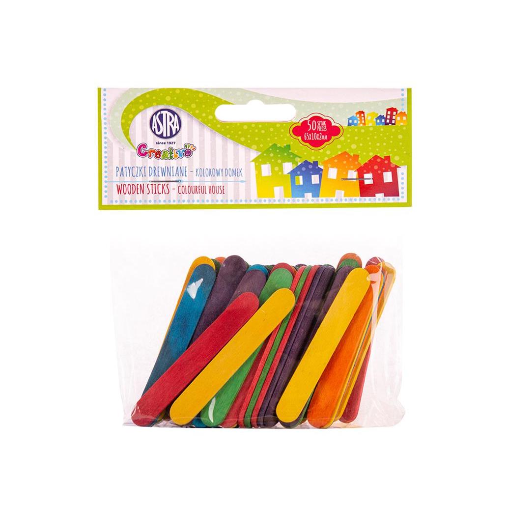 Espátulas Coloridas Curtas de Madeira natural, agradável ao toque, em embalagem conveniente de plástico.