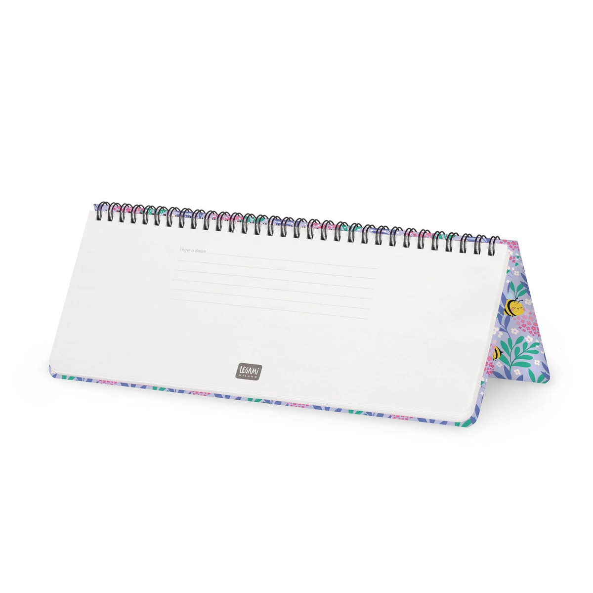 Ser abelha ou não ser abelha? A resposta não poderia ser mais clara, se estivermos a falar das abelhinhas atarefadas do Planejador de Secretária - Bee da Legami. O design da capa dura as mostra zumbindo animadamente de uma flor para outra, para dar um toque de alegria aos seus passos pelos próximos 12 meses.